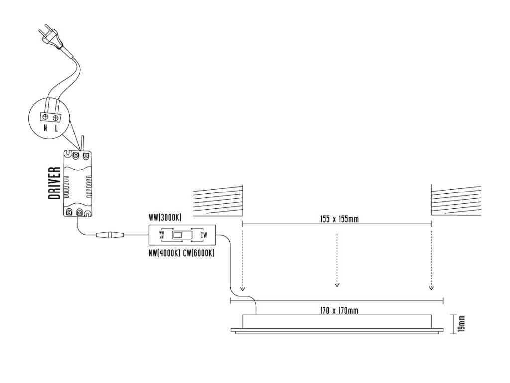 montážny otvor (mm) | 155 x 155 |