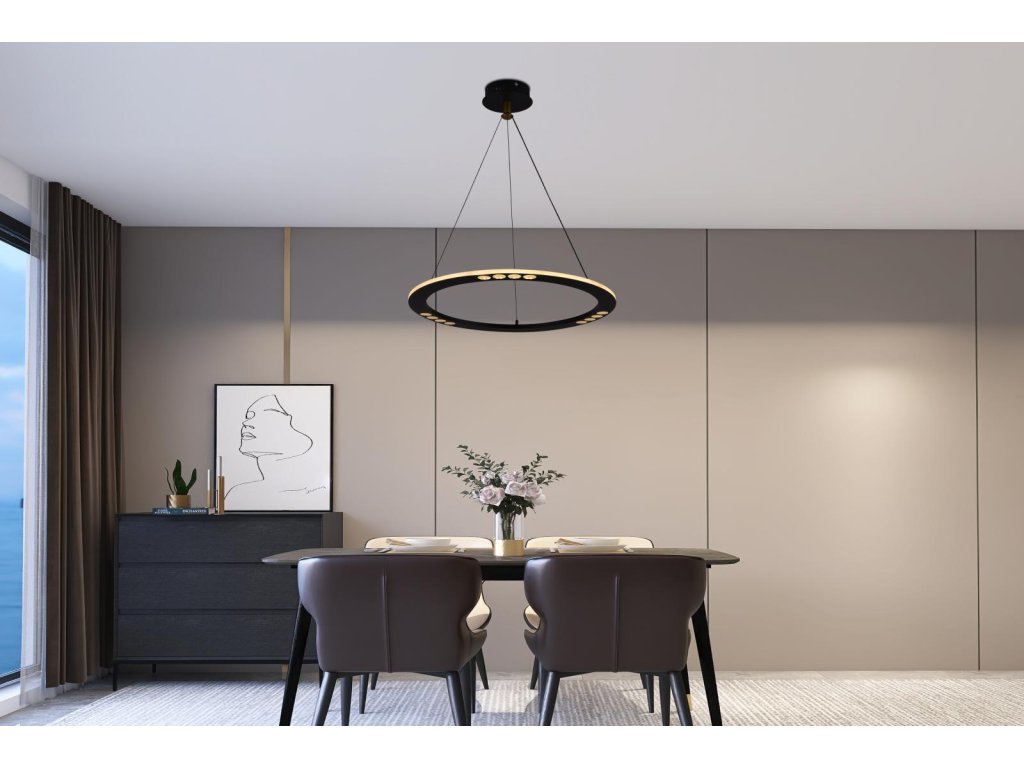 LED dizajnové závesné svietidlo s diaľkovým ovládačom RF 2,4GHz značky NEDES, je lampa vhodná do kuchyne, jedálne, spálne, chodby alebo obývačky. Tieto svietidlá vynikajúco kombinujú moderný štýl s najvyššou kvalitou. Svetlá sú ovládané SMART technológiu pomocou aplikácie NEDES Smart.