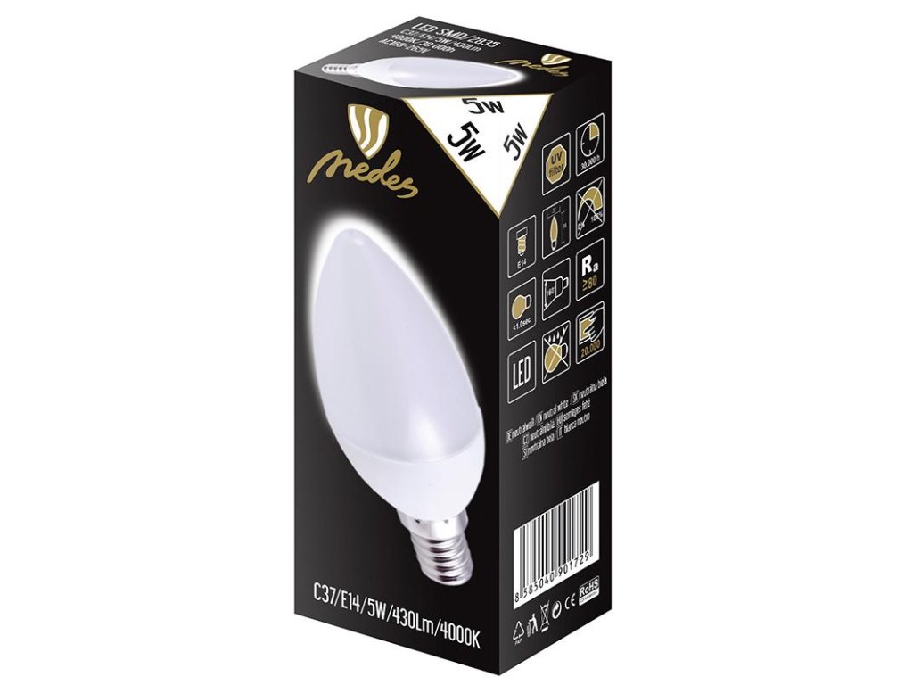 LED žiarovka 5W - C37 / E14 / SMD / 4000K - ZLS722