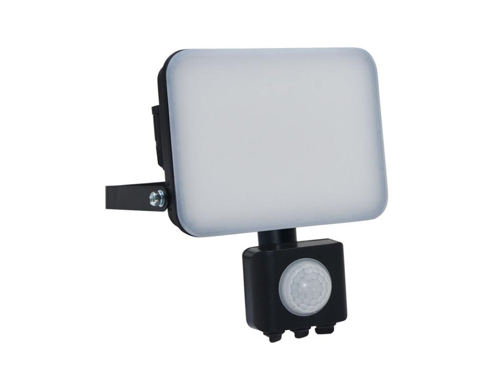 Vonkajší čierny LED reflektor so senzorom 30W / 4000K - LF7023S