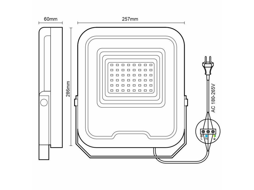 LED reflektor LF6025 v čiernej farbe, s výkonom 100W, svietivosťou 12000Lm a farbou svetla 5000K disponuje držiakom a vysokokvalitným LED čipom.