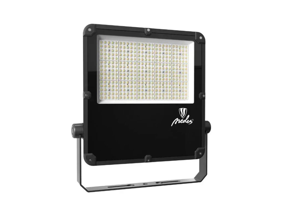 LED reflektor LF4027N v čiernej farbe, s výkonom 200W, svietivosťou 30000Lm a farbou svetla 5000K disponuje držiakom a vysokokvalitným LED čipom.